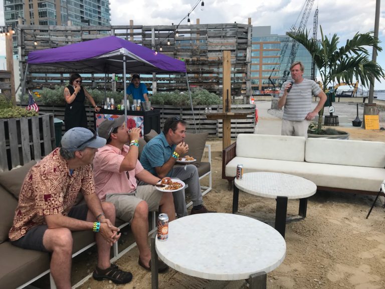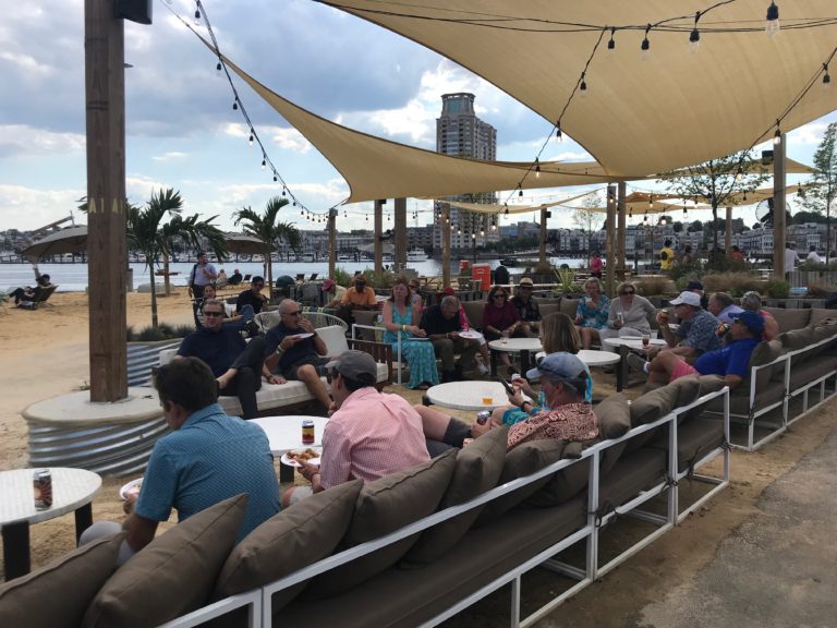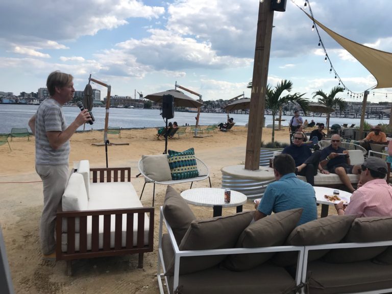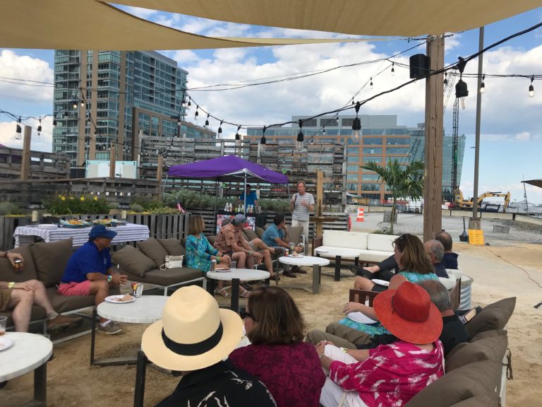 On July 18, 2018 we hosted our Annual Summer Outing at the Sandlot in Harbor Point. Sandlot is Baltimore’s beach: local food, games for all, cold drinks, and epic sunset selfies – the coolest place to be on a hot summer day, the hottest place to be on a cool summer night. We enjoyed a food, beverages, and a special presentation by Chef Spike Gjerde. His hard work has been featured in The New York Times, The Wall Street Journal, Food & Wine, Food Arts, Esquire, Southern Living, Garden & Gun and The Washington Post. In 2013 and 2014, Gjerde was named a finalist for the James Beard Foundation’s “Best Chef, Mid-Atlantic” award. In 2015, Spike became the first Baltimore chef to bring home the award. Thanks to Kim LiPira for summer outing photos.