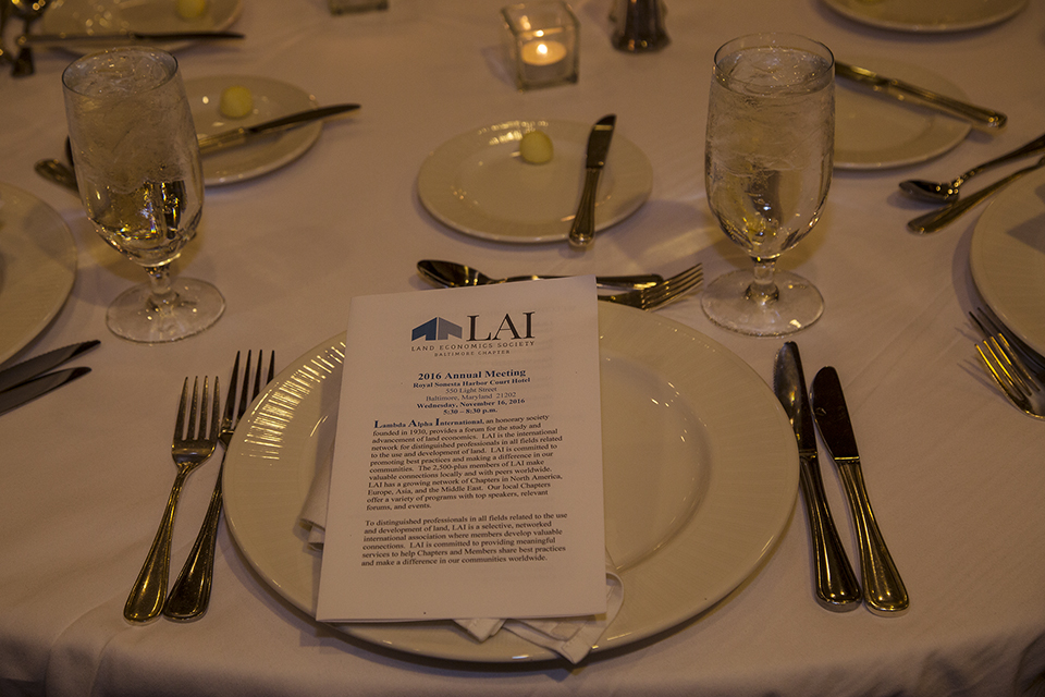 We hosted our LAI Annual Dinner Meeting at the Royal Sonesta Harbor Court Hotel, 550 Light Street, Baltimore, Maryland 21202. This well attended event included induction of many new members, board slate and presentation of 2016 Chapter Member of the Year Award to Josef Nathanson. Keynote speaker was Caroline Paff of Sagamore Development Company. Thanks to Bob Madden for the photography.