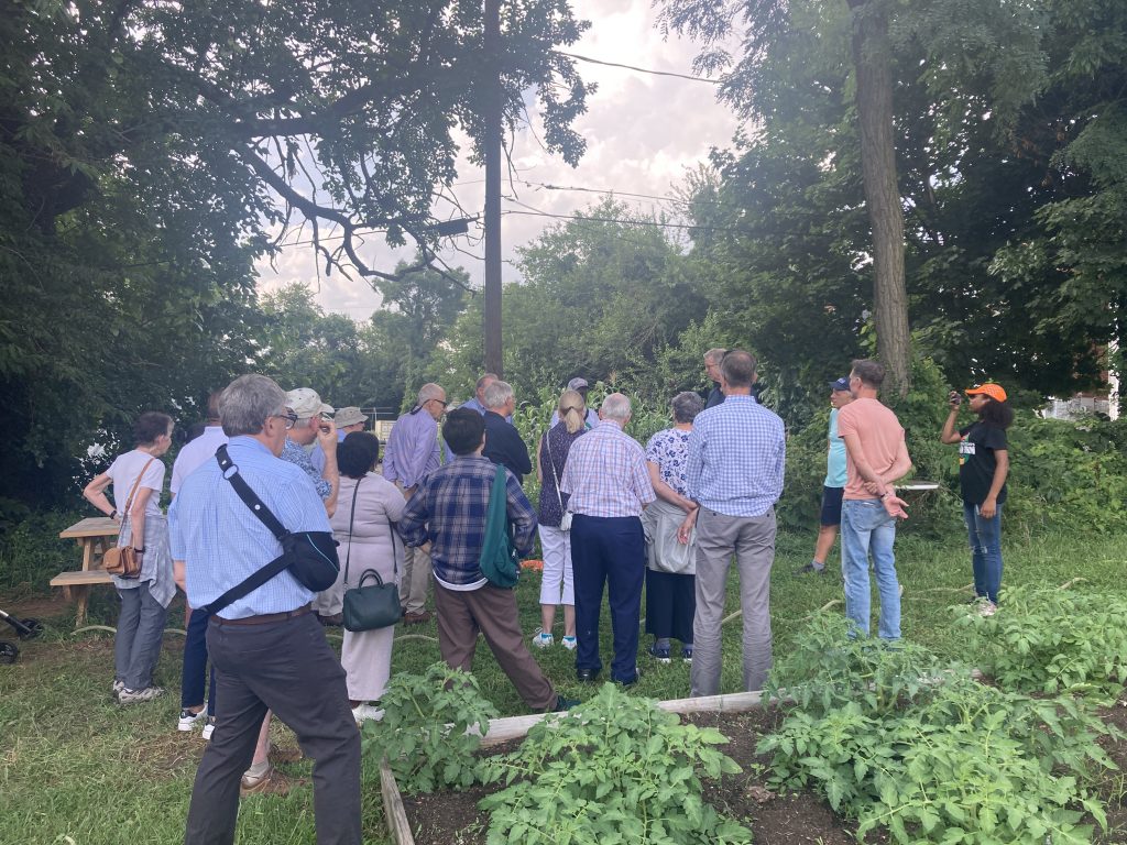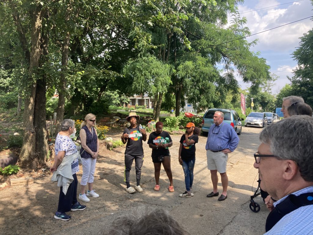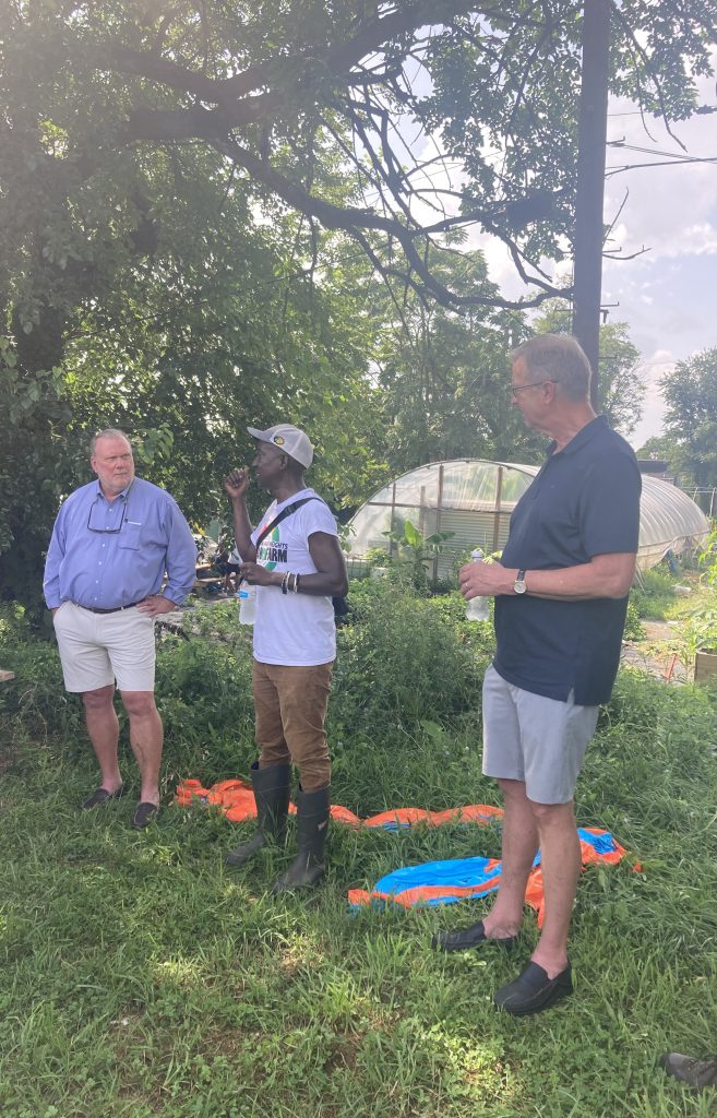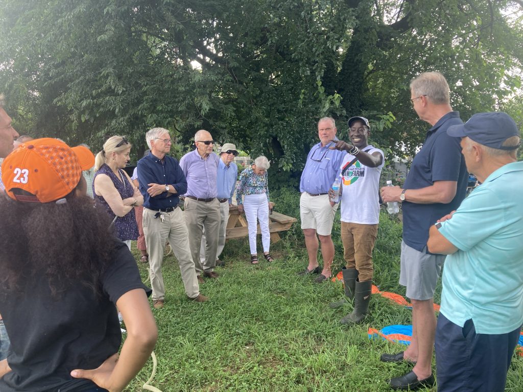 On July 19, 2023 we learned about Plantation Park Heights Urban Farm with Executive Director Richard Francis – Farmer Chippy – who took members around the six-acre site that had previously been vacant and in Baltimore City during our LAI Baltimore Summer Outing. The farm is now an oasis providing fresh produce to residents and a safe space and structure for neighborhood youth. Read LAI Member Joe Nathanson’s The Daily Record column for more details. LAI also visited Joe Shaffer and Tom Baum, owner of Hidden Waters Farm and Market, who are committed to regenerative agriculture and healthy ecosystems. A presentation, plus a delicious meal, was shared at this 110-acre organic farm.