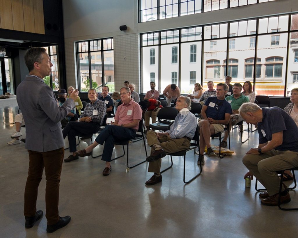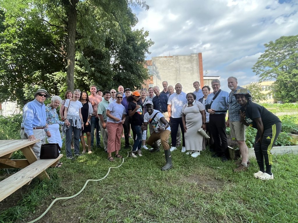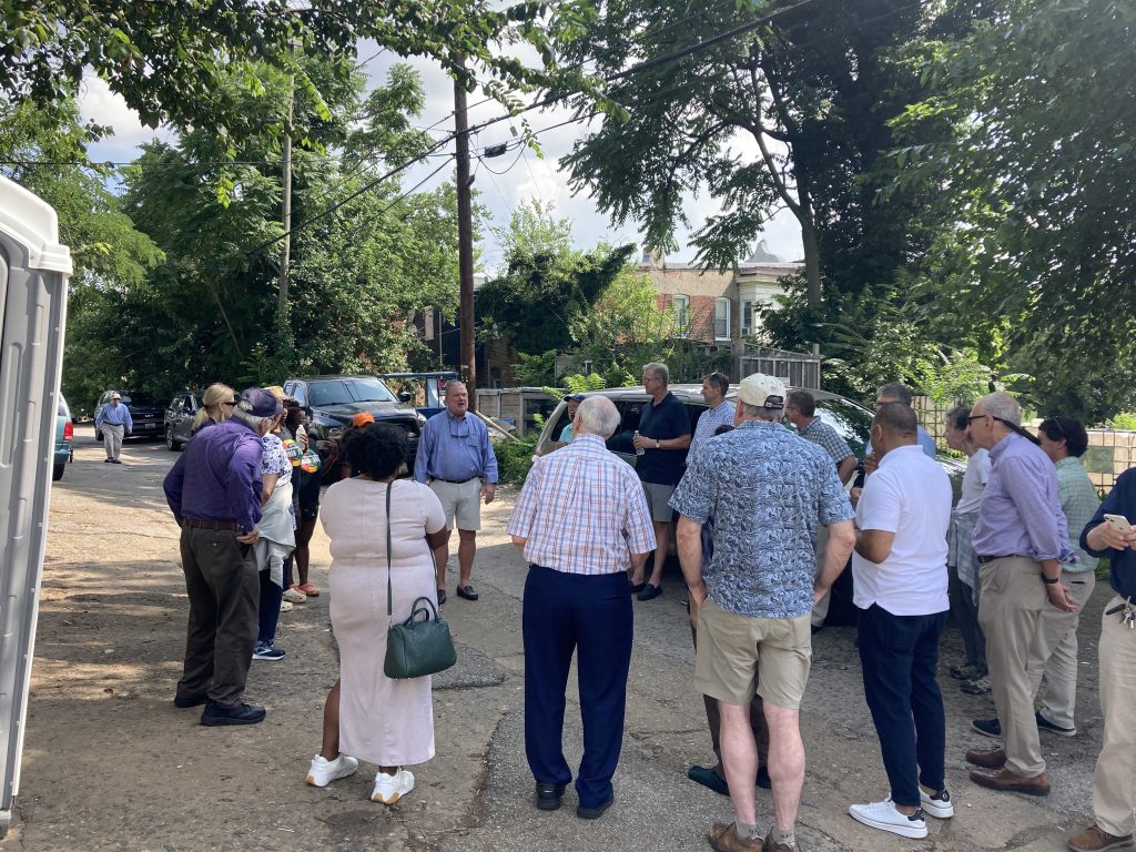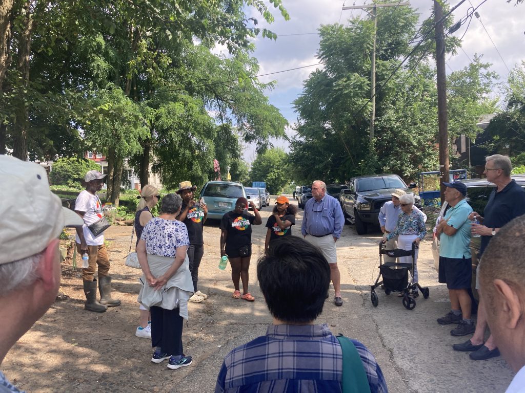 On July 19, 2023 we learned about Plantation Park Heights Urban Farm with Executive Director Richard Francis – Farmer Chippy – who took members around the six-acre site that had previously been vacant and in Baltimore City during our LAI Baltimore Summer Outing. The farm is now an oasis providing fresh produce to residents and a safe space and structure for neighborhood youth. Read LAI Member Joe Nathanson’s The Daily Record column for more details. LAI also visited Joe Shaffer and Tom Baum, owner of Hidden Waters Farm and Market, who are committed to regenerative agriculture and healthy ecosystems. A presentation, plus a delicious meal, was shared at this 110-acre organic farm.