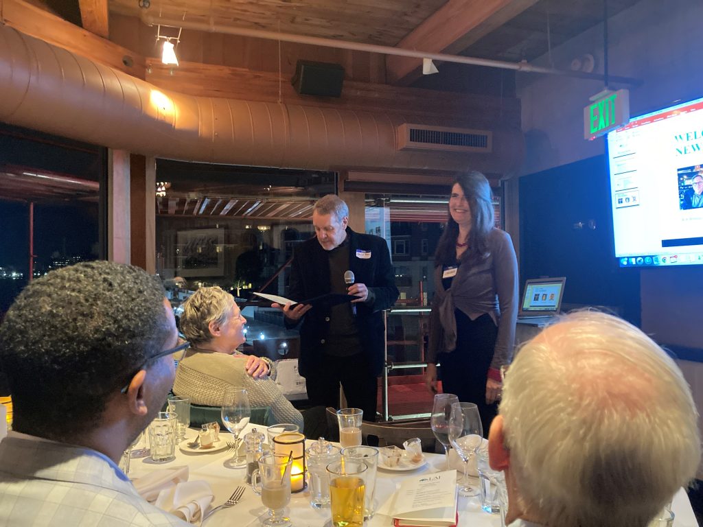 Annual Meeting November 20, 2024 with keynote speaker Annual Meeting 2024 with keynote speaker Claudia Jolin, Executive Director, Baltimore Peninsula Community Benefits District, held at the Rye Street Tavern. LAI Baltimore 2024 Chapter Member of the Year was presented to Sean Davis, Morris & Ritchie Associates, Inc., for his dedicated service on our Programs Committee. Inducted new LAI members. Chapter made a donation of $2,500 to Chris and Pam Wilson of Hope Village and $2,500 to Nickolas Wisniewski of The Compound.