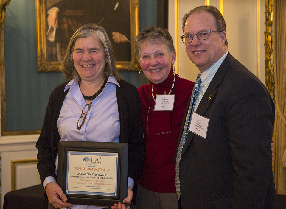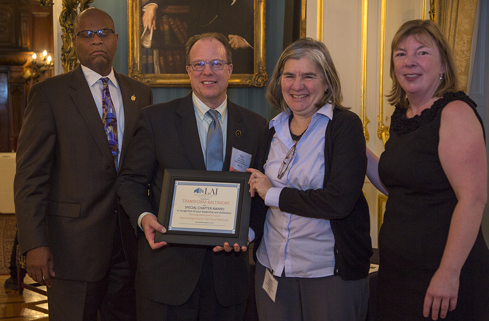 We welcome new members, new board slate, and kudos to Tara Clifford, as Chair of the Awards Committee, who presented Rachel Edds with a well-deserved Baltimore 2017 Chapter Member of the Year Award! And a Special Chapter Award to “Transform Baltimore” was presented to Tom Stosur and Laurie Feinberg of the Baltimore Department of Planning in recognition of their leadership and dedication planning for Baltimore’s future. Transform is Baltimore’s new zoning code adopted December 5, 2016. (Fellow LAI member Les Pollock’s Chicago based firm Camiros Ltd. was hired as consultant). Prior to Transform, the Baltimore City Zoning Code was last comprehensively updated in 1971. Thanks to Bob Madden for our photography.