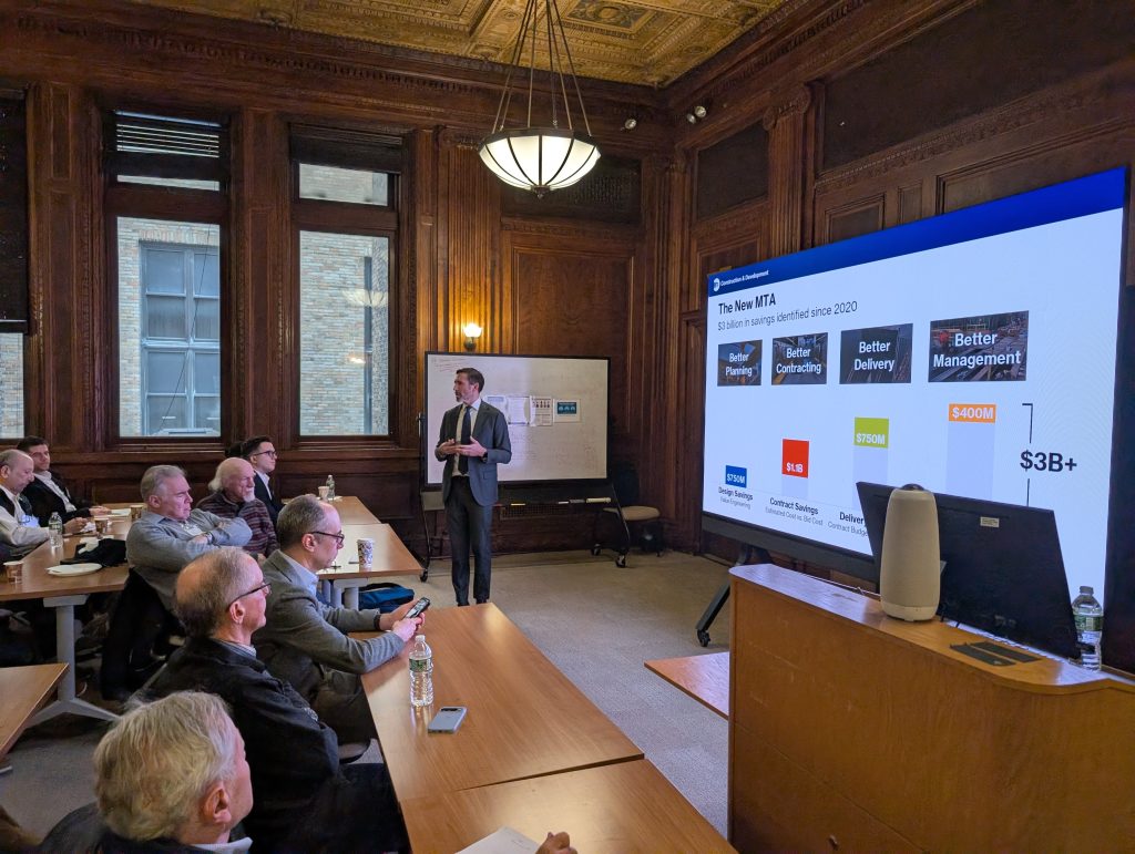 On Tuesday, February 10, 2026, we had the honor of hosting Jamie Torres-Springer, President of MTA Construction & Development for a standing room only event. Jamie provided an overview of the MTA’s $68 billion capital plan, offering members and guests a fascinating insider’s perspective on the scope and ambition of the agency’s current program.